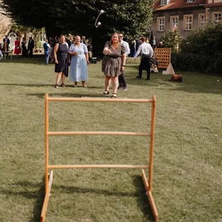 Alles begann mit unserer eigenen Hochzeit: Dafür haben wir die ersten XXL-Outdoorspiele gebaut, um unseren Gästen etwas Besonderes zu bieten und die Wartezeit zu verkürzen. Die Begeisterung auf unserer Feier war so groß, dass daraus die Idee entstand, die Spiele auch anderen Brautpaaren und Feiernden zur Verfügung zu stellen.